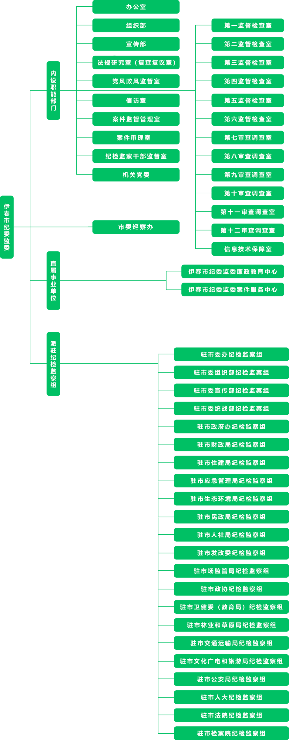 驻市委统战部纪检监察组 监督单位:市委统一战线工作部(市民族宗教事务局、市政府侨务办公室、市委台湾工作办公室)、市工商业联合会、市总工会、共青团伊春市委员会、市妇女联合会、市科学技术协会、市归国华侨联合会等7家单位